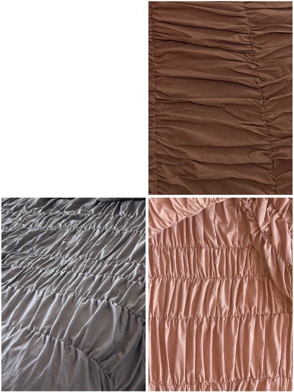 Elaborado de tusor 100% algodón. Ambas lados están elaborados del mismo material, con la diferencia de que la parte trasera es liso. Es reversible , ya que se puede utilizar de ambas caras. Terminación con cierre.